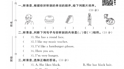【卓越阳光】五(上)【湘少版】英语课时《课堂练习》XS卷+答案