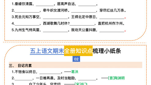 ❀【卓越阳光】五上语文全册知识点梳理小纸条【空白+答案】